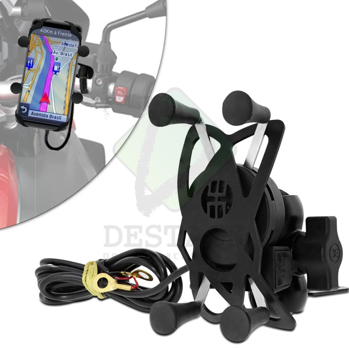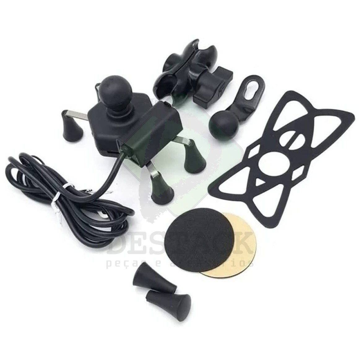 Suporte Carregador com Garra Para Celular Moto Universal Com Usb